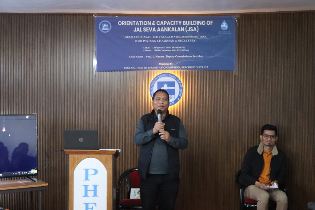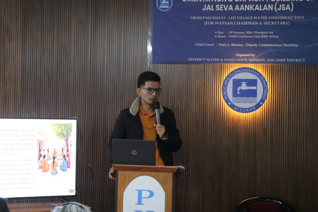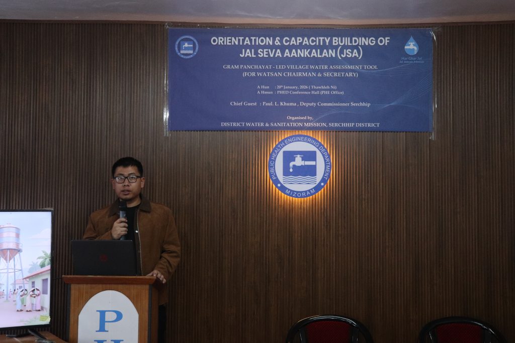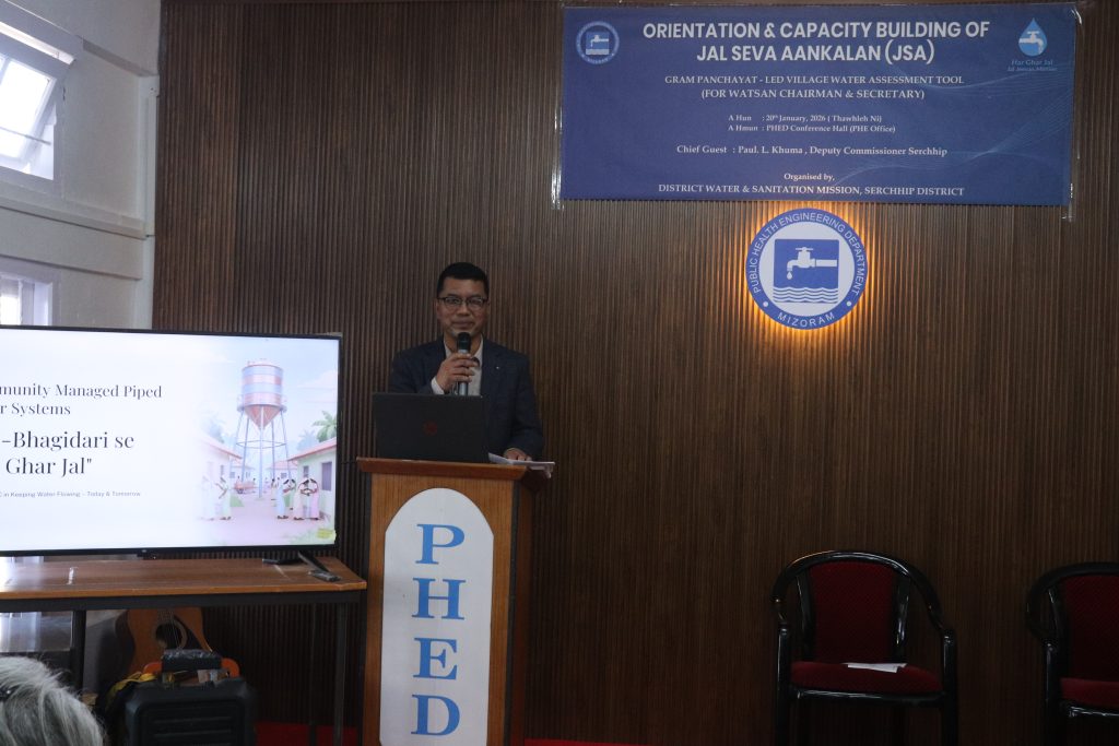 Ni 20.1.2026 (Thawhleh ni) hian Central Sawrkarin Jal Jeevan Mission enkawlzui zelna tur a program a duan chhuah Jal Seva Aankalan (JSA) pualin Serchhip District chhung a Rural WATSAN Chairman leh Secretary te tan training buatsaih a ni a.